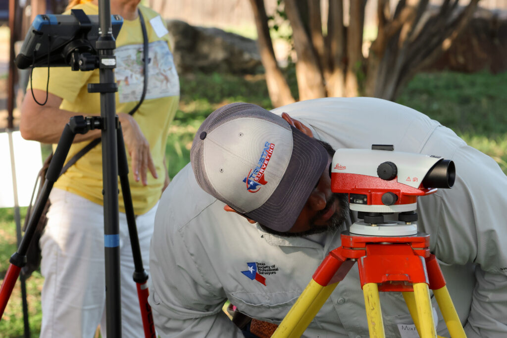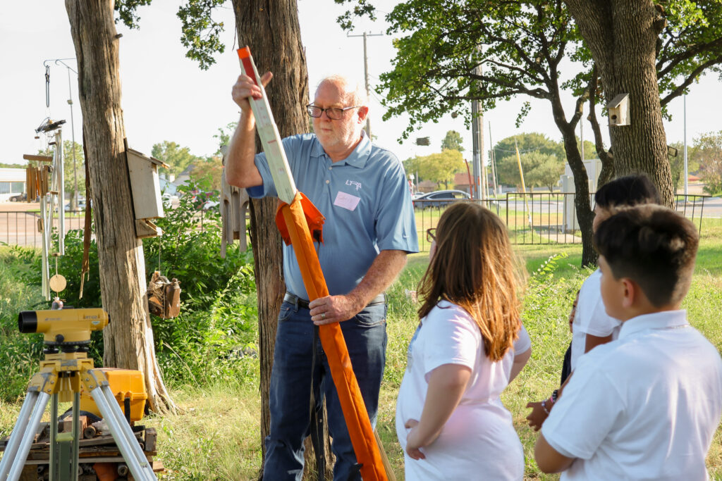 Chris and Marcos have also committed to a future opportunity scheduled at the Warren Ferris Historical Cemetery with a group of 4th and 5th-graders from Sanger Elementary, a Dallas ISD school located across the street from the cemetery. They will display typical instruments that Ferris would have used in his surveys of Dallas County in the 1850s, including a compass with Jacob’s staff and a Gunter’s chain.